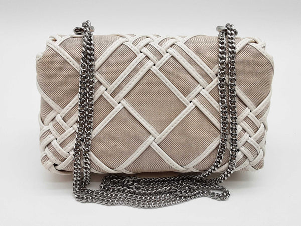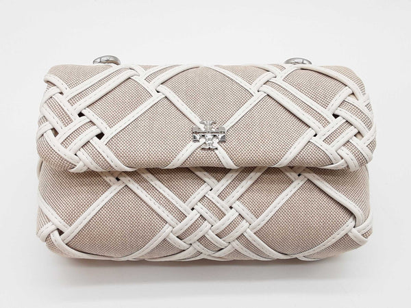 Tory Burch Kira Woven Canvas Mini Natural/blanc Flap Bag Sd1025lzxde